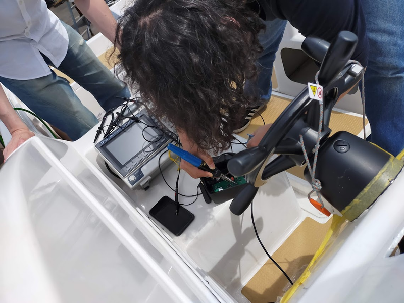 事柴:自律航行船を作るには、認識・制御などのソフトウエアだけではなく、船外機などの船を動かす機構部分が必要で、ソフトウェアと機構をつないで電気制御するための基板を作っています。