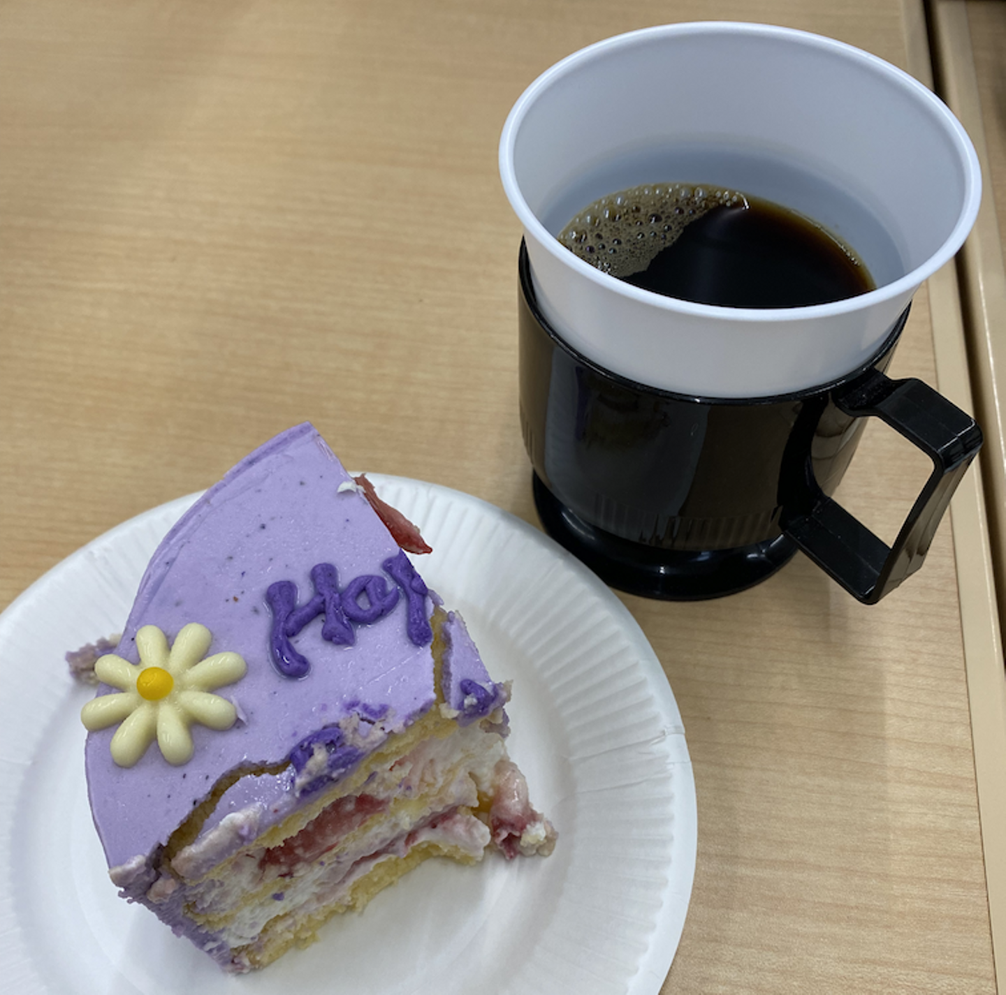 棚橋デスクの写真で恐縮なのですが、紫色からは想像できない甘さなのでコーヒーとよく合いました。