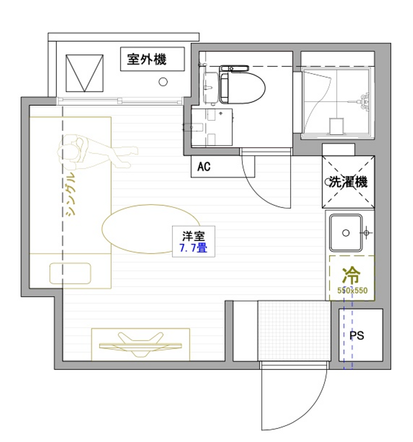 15㎡ほどのとてもミニマルなお部屋。
