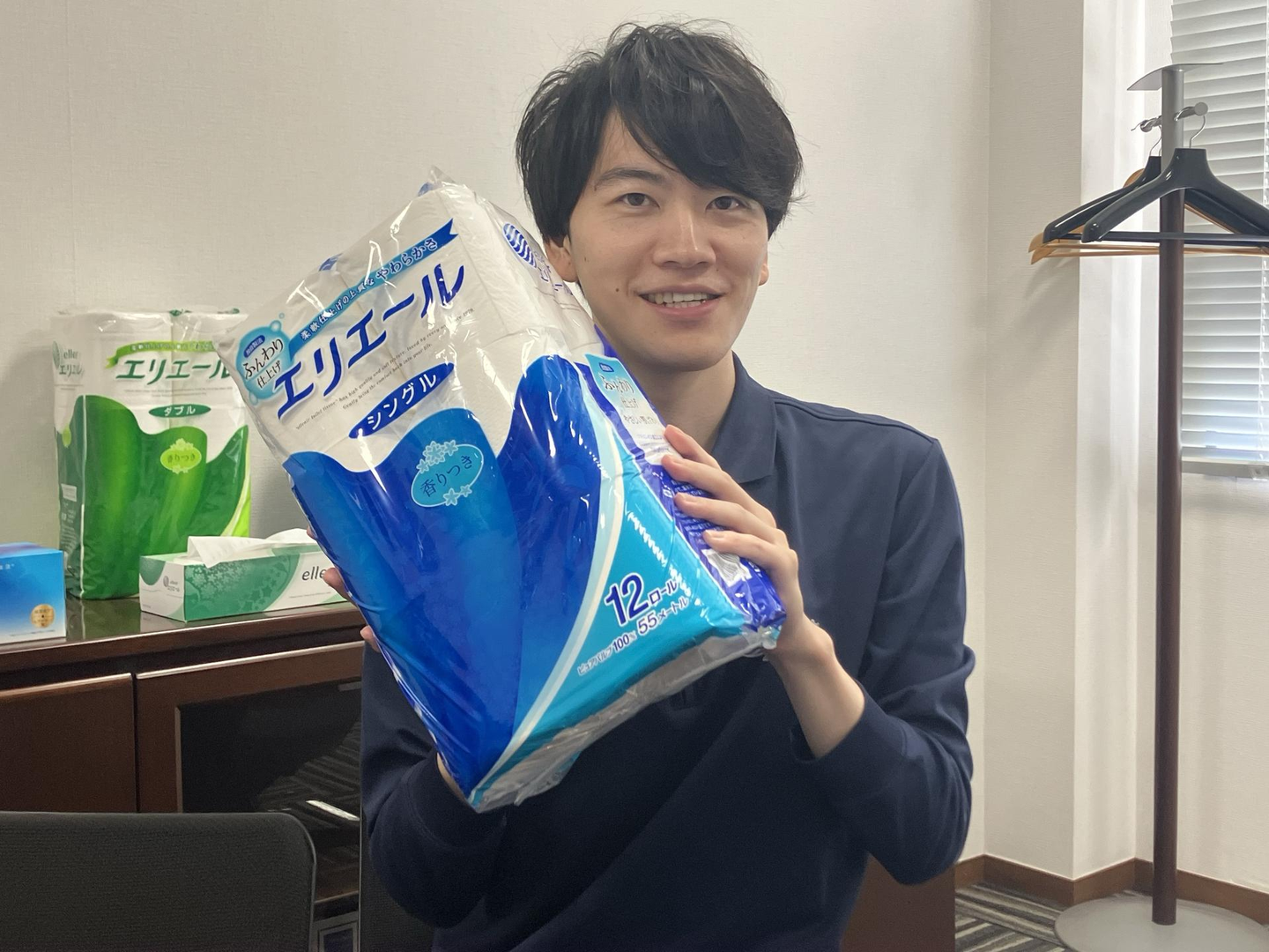 2年目では、静岡工場で新しいトイレットペーパー製造ラインの導入を担当させてもらいました。機械の設計・調整・試運転などを経験し、自分が関わった設備から製品が生まれた瞬間の感動を今でも覚えています。