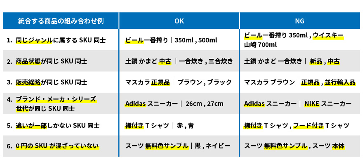 じゃあSKU統合をどんどんしていこう!となるのですが、