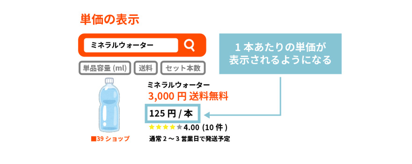 商品単価も表示されるようになったので、検索結果上でも商品比較がしやすくなりました!