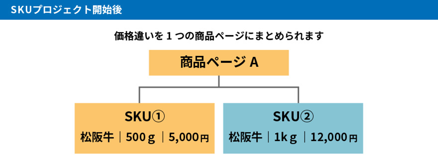 今回の「SKUプロジェクト」によって、価格違いの同一商品を1つの商品ページに統合することが出来るようになりました!