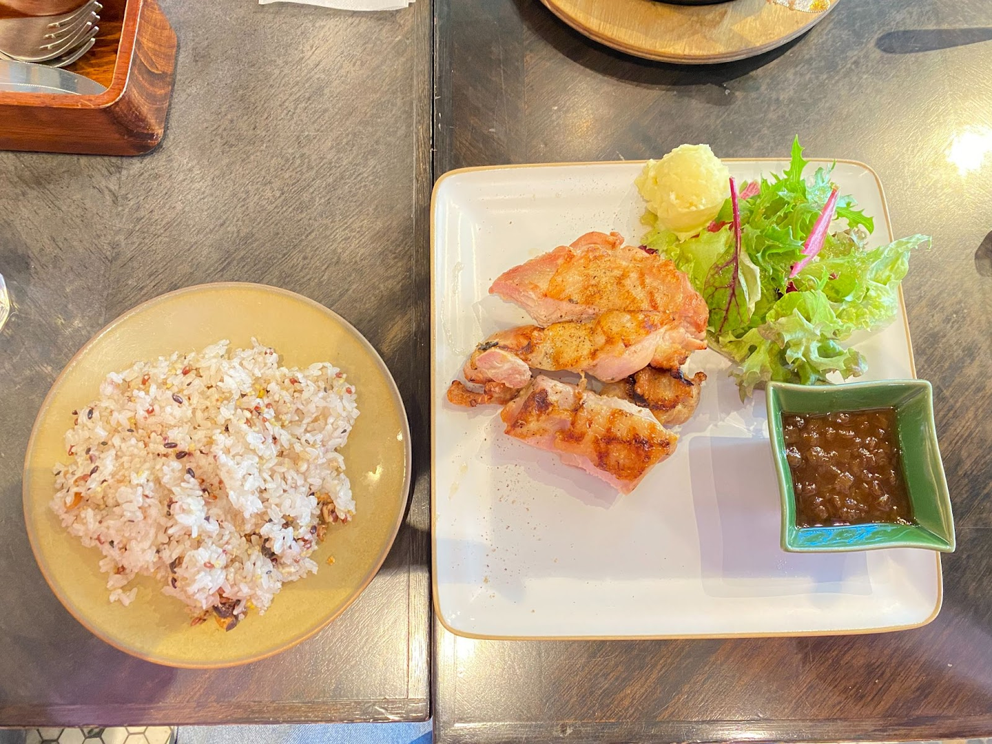 とはいえ、鶏もも肉もめちゃくちゃ美味しい!皮がパリパリに焼かれ、パンチの効いたオニオンソースとの相性が抜群。ご飯が進みすぎて、おかわりしたくなるほどの美味しさでした😋