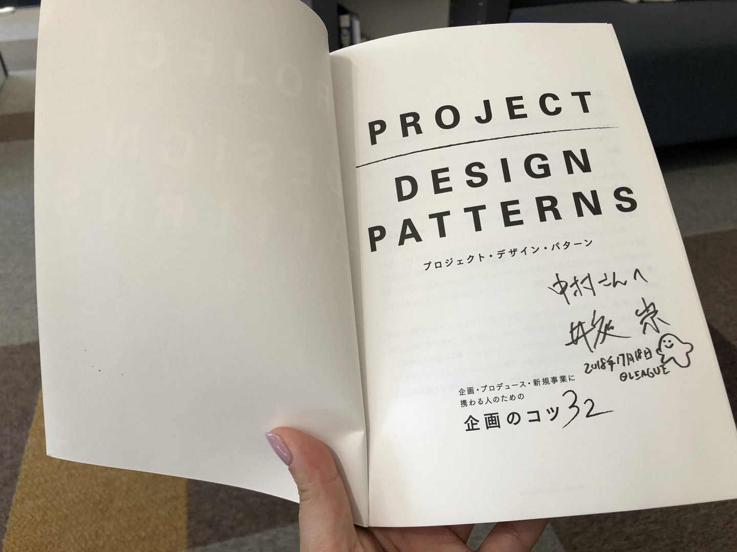2018年に行われた「プロジェクトデザインパターン」のワークショップにて井庭先生からサインをいただきました◎うれしい!