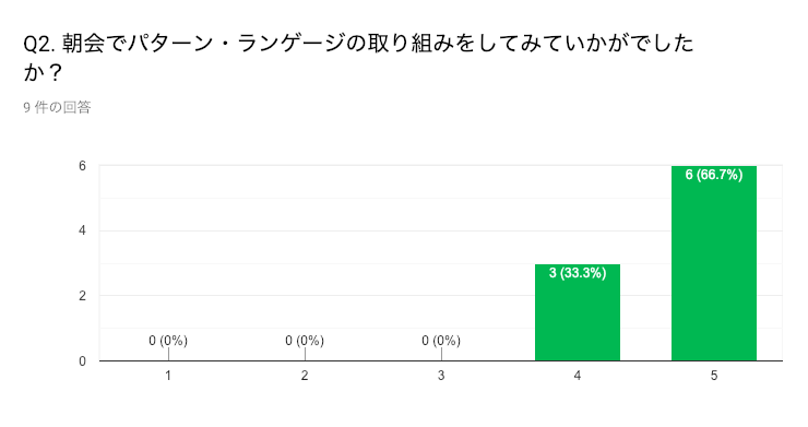 「パターン・ランゲージ」はみんなことをよく知ることでチームビルディングの一助になっただけでなく、朝からみんなの笑い声を聞けたり、笑顔をみることができるようになり、穏やかでハッピーな気持ちで1日を始められるようになりました◎うれしい!