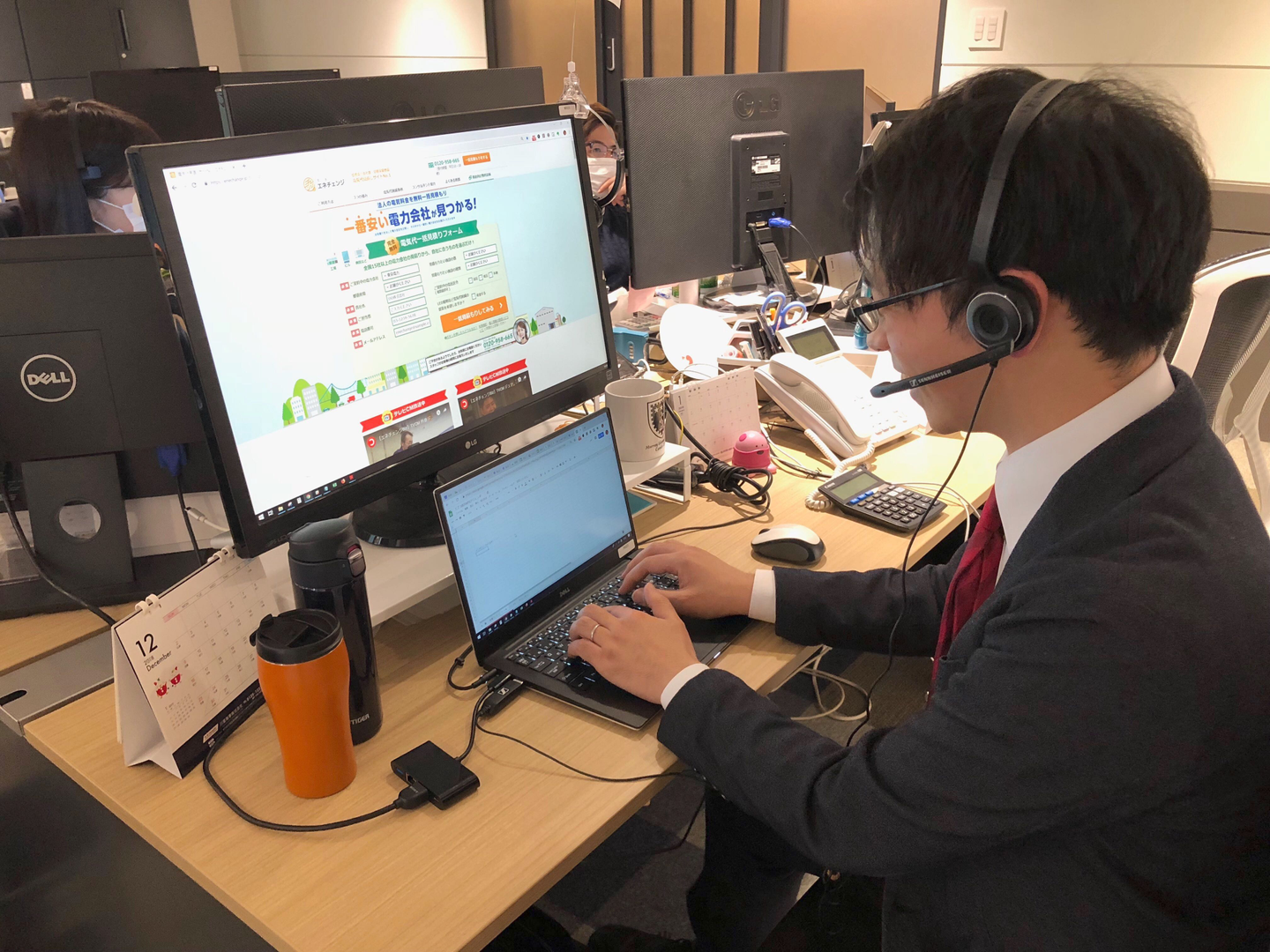 法人向けの電力会社選びから切り替え手続きまでをサポートするサービスです。法人の場合は12ヶ月分の電気使用量のお知らせをもとに、インサイドセールスチームのメンバーがエネチェンジBizと提携している電力会社から見積もりを取得し、お客さまに電気料金の削減額のご案内をしています。