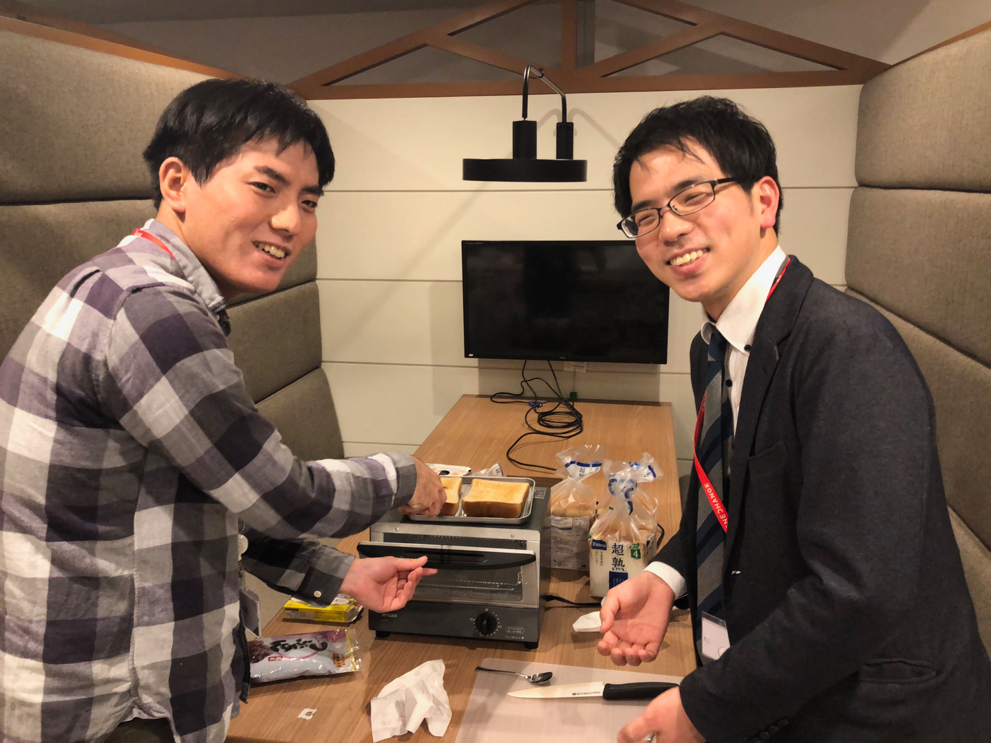 (社内イベント「HappyFriday(※6)」でのひとこま。左はエンジニアの瀧さん)