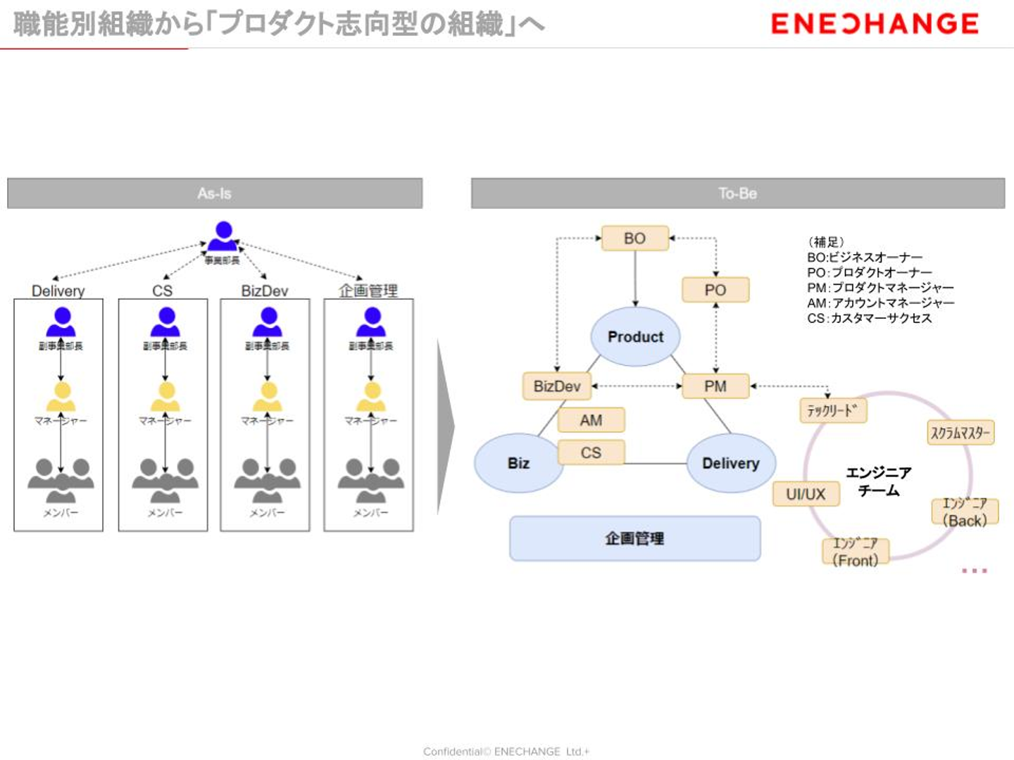 この背景には、私たちが扱っているプロダクトの種類が直近の数年で増加したことがあります。「エネチェンジクラウドDR」は、もともと関連会社であるSMAP ENERGY社が開発・運用していたシステムを、経営統合に伴い引き受けました。また、「エネチェンジクラウドEV」も、充電スポット検索アプリである「EVsmartアプリ」をアユダンテ社から事業譲渡を受け、現在はEV充電エネチェンジアプリと統合して、さらに便利なアプリとして生まれ変わっています。