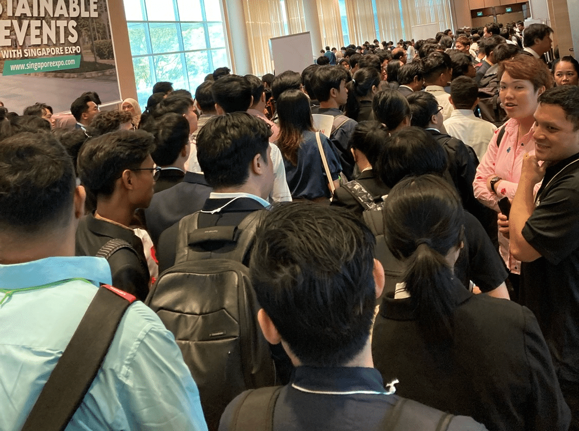 筆者が会場入りした9時過ぎには、チラホラと学生の姿が見受けられた。会場は、シンガポールExpoというチャンギ空港のすぐ近く。地元シンガポールからの来場者に加え、朝一のフライトでシンガポール入りした学生たちにとっても便利な場所で、早くも会場入りしてきたのだろう。