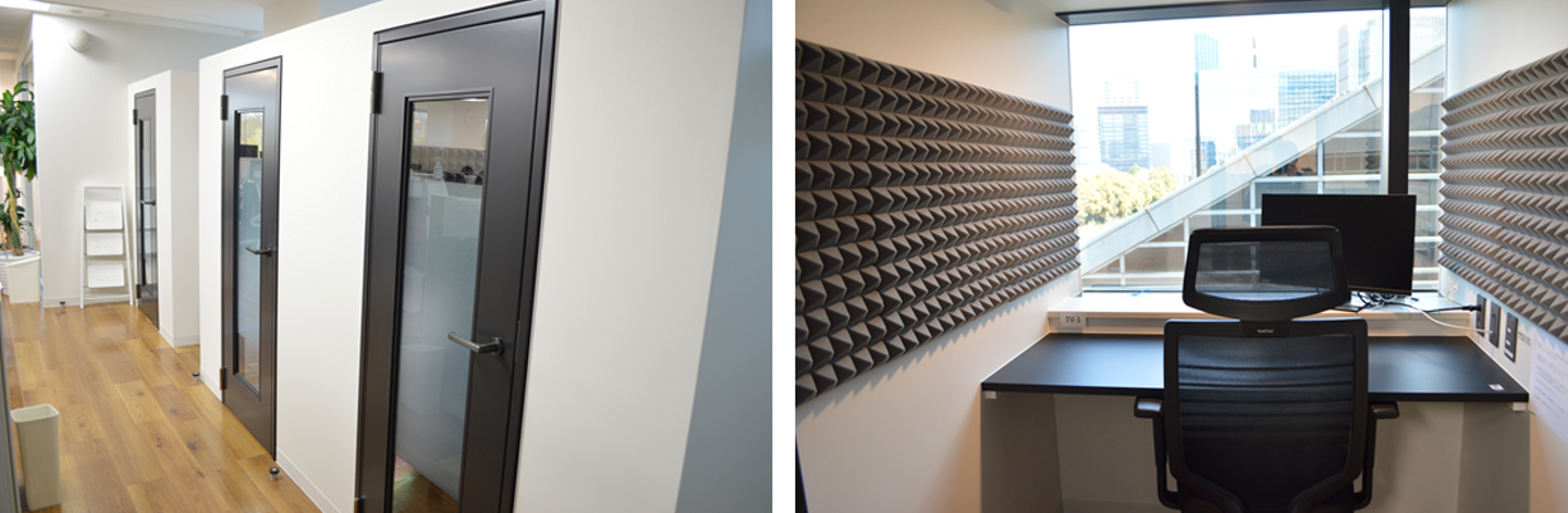 他の出社メンバーの集中を妨げないためにも、オンライン会議用の個人ブースを用意しました。