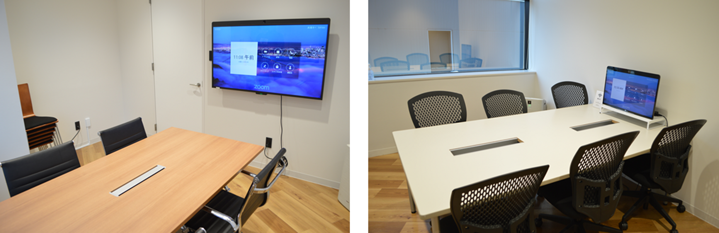 会議室にはzoom専用モニターのDTENを全室完備しております。