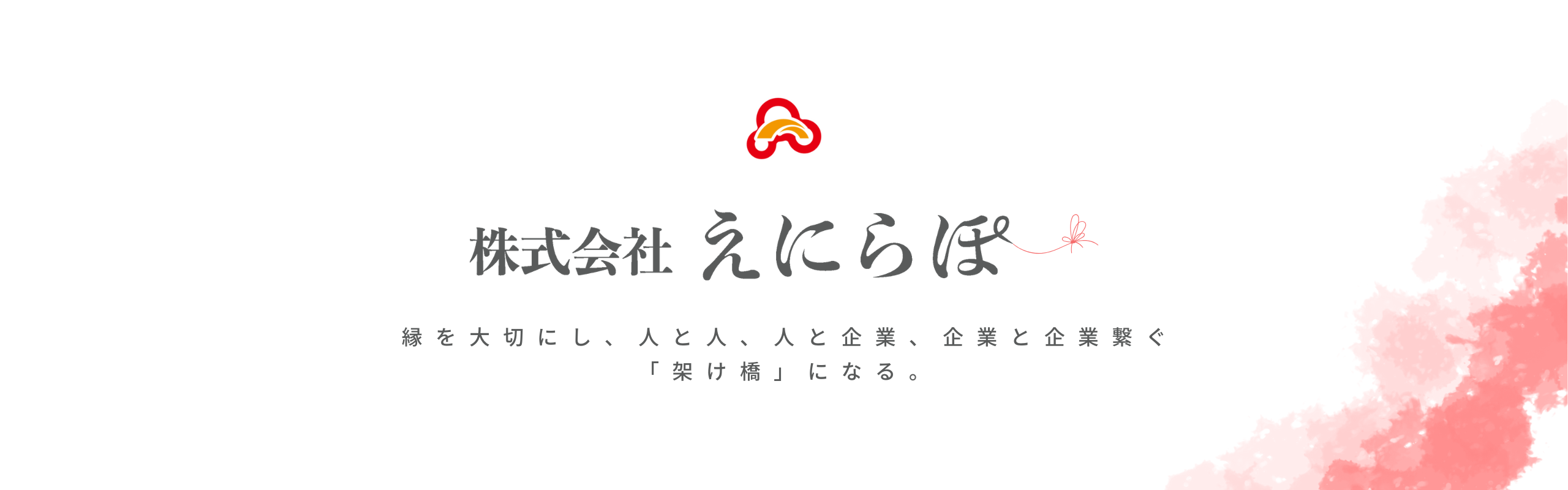 縁を大切にし、人と人、人と企業、企業と企業を繋ぐ「架け橋」となりたいという想いから「えに(縁)らぽ(rapport)」と命名しました。「IT」と「課題解決のための伴走」を得意とし、「想い」を大切にしている会社です。IT化が進む中、人と人との繋がりはITだけでは解決できない部分も多くあります。古き良き「ご縁」や「繋がり」、「想い」を大切にしながら、IT化できる部分はしっかりと解決し、地域になくてはならない存在を目指しています。