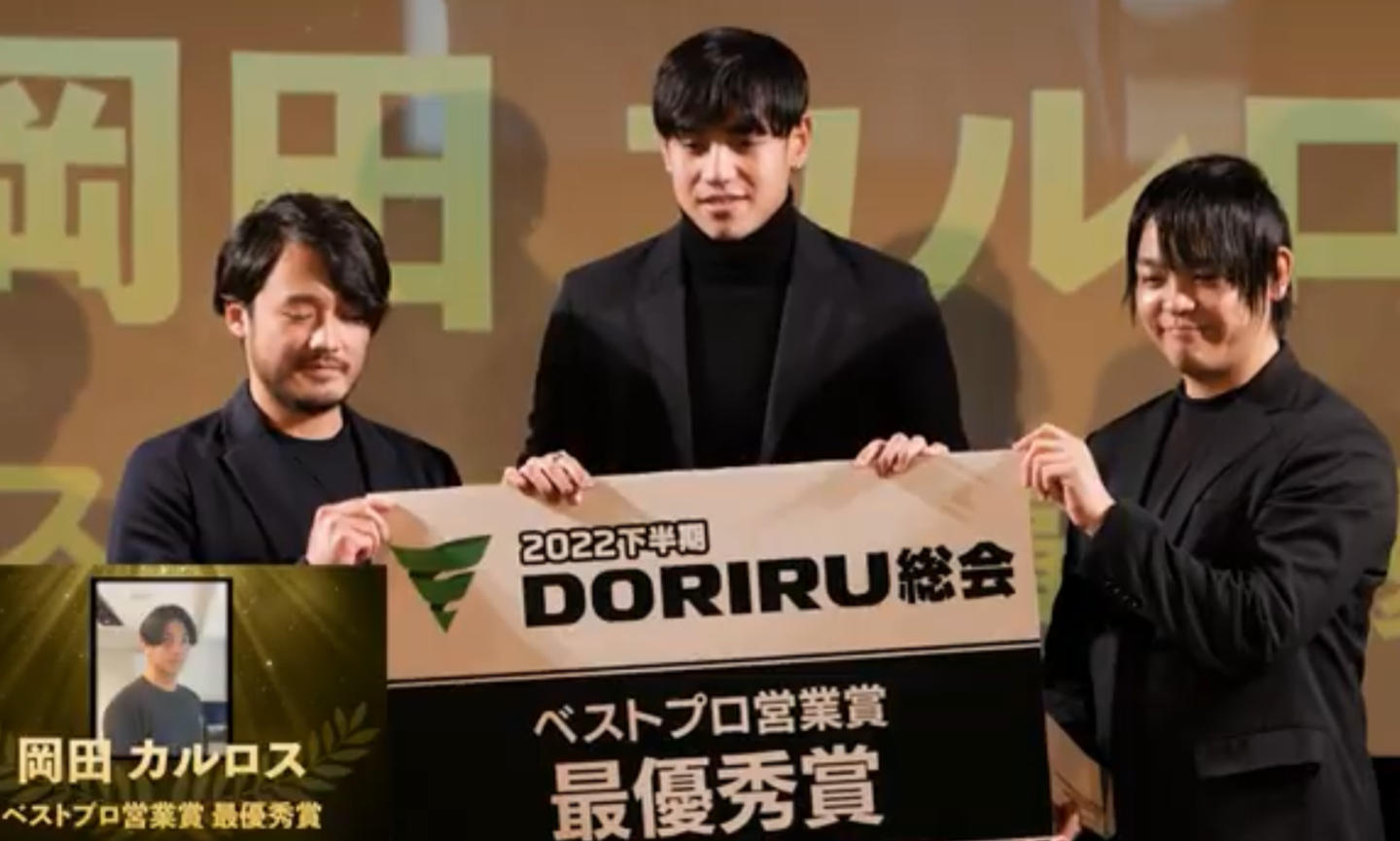 DORIRU株式会社でベストプロ営業賞を受賞した記念の一枚です!営業未経験からのスタートでも、努力と情熱があればトップを目指せることを確信した瞬間でした。