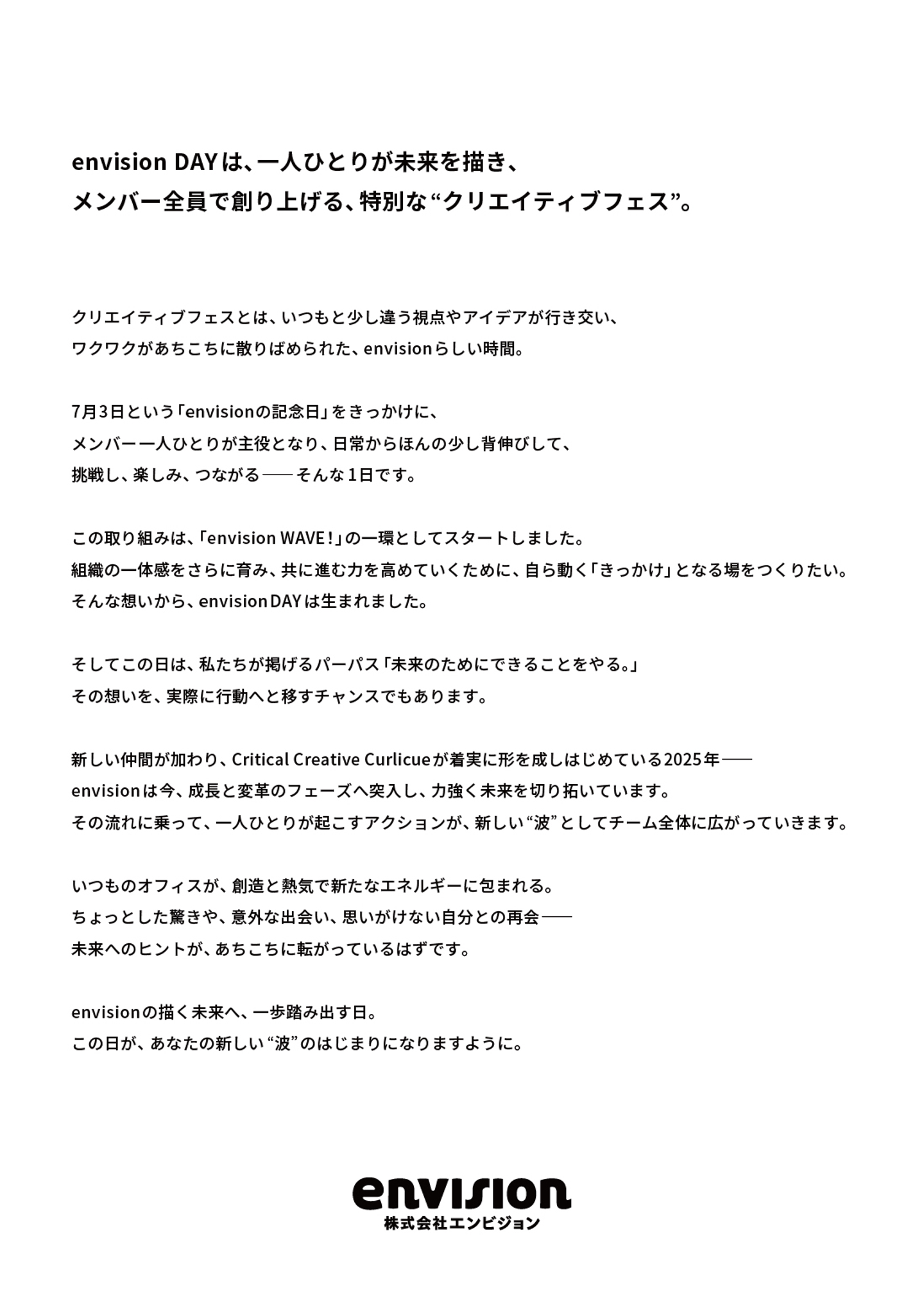2025年7月3日、わたしたちエンビジョンは、はじめての社内イベント「envision DAY」を開催しました!