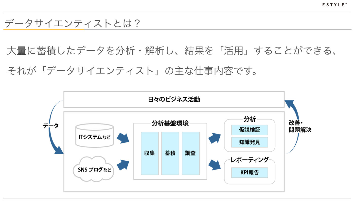 こうした差し迫った社会課題にメスを入れるべく、エスタイルでは未経験でもポテンシャルのある人材を、優秀なデータサイエンティストに育て上げる教育制度「ESTYLE U」を開校しました。