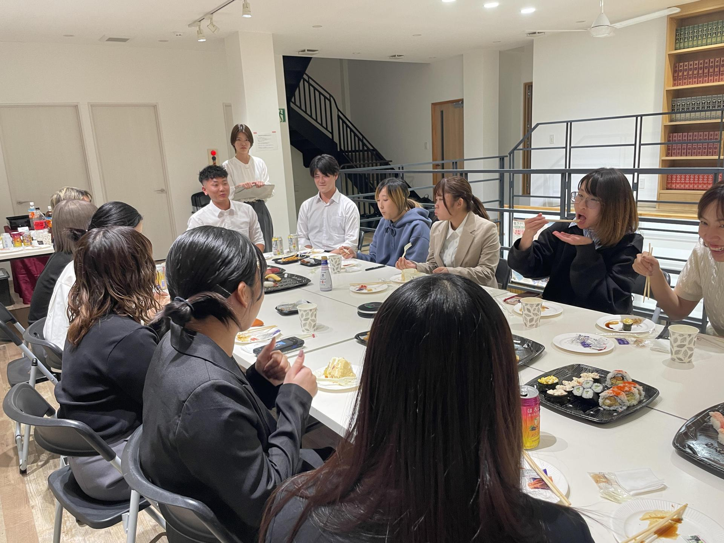 緊張していた空気が一気にほぐれたのが、お寿司とケーキの力。