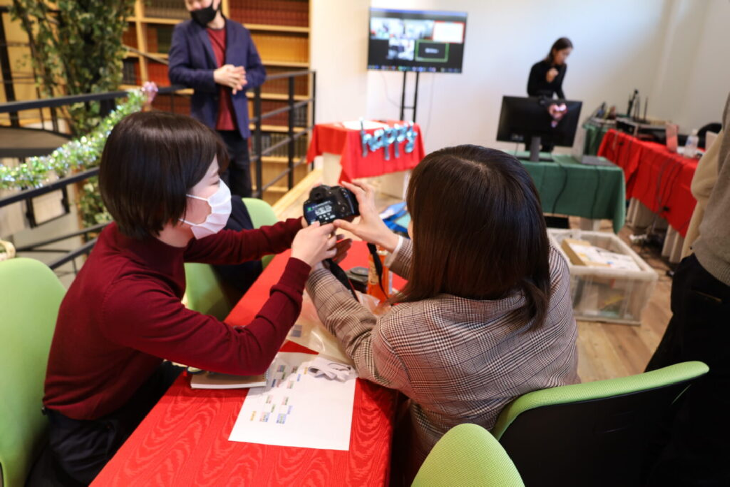 来期から一緒に働くNさんにカメラの使い方を教える鴨池先輩。姉妹のような2人です。