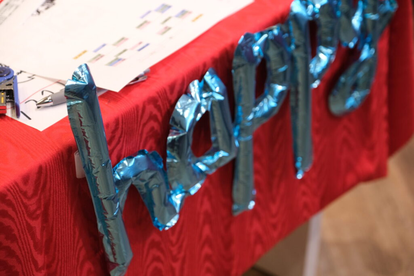 当日の準備中に急遽、テーブルクロス敷こ!と声が上がり準備しました。すべてイベント21で扱っている商品なので在庫を確認してすぐに用意。自分たちで言うのもあれですが、テーブルクロスを用意すると決まってからの行動が本当に一瞬で、「さすがイベント会社!」と思いました😄