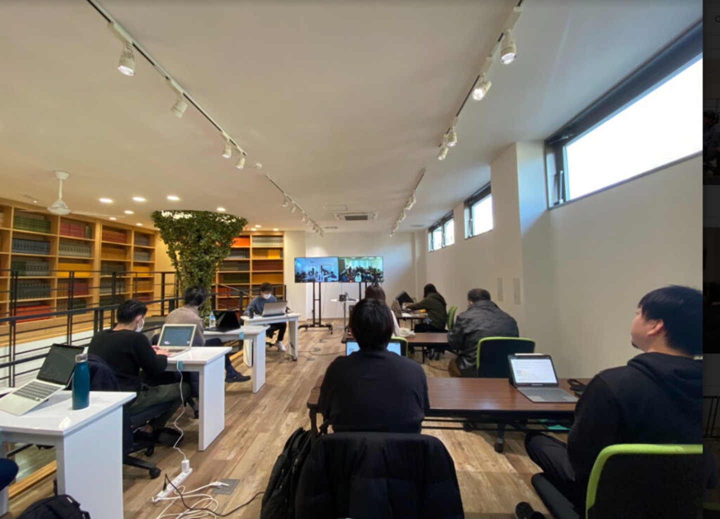 セミナー形式でテーブルと椅子を配置し、集中できる環境に。