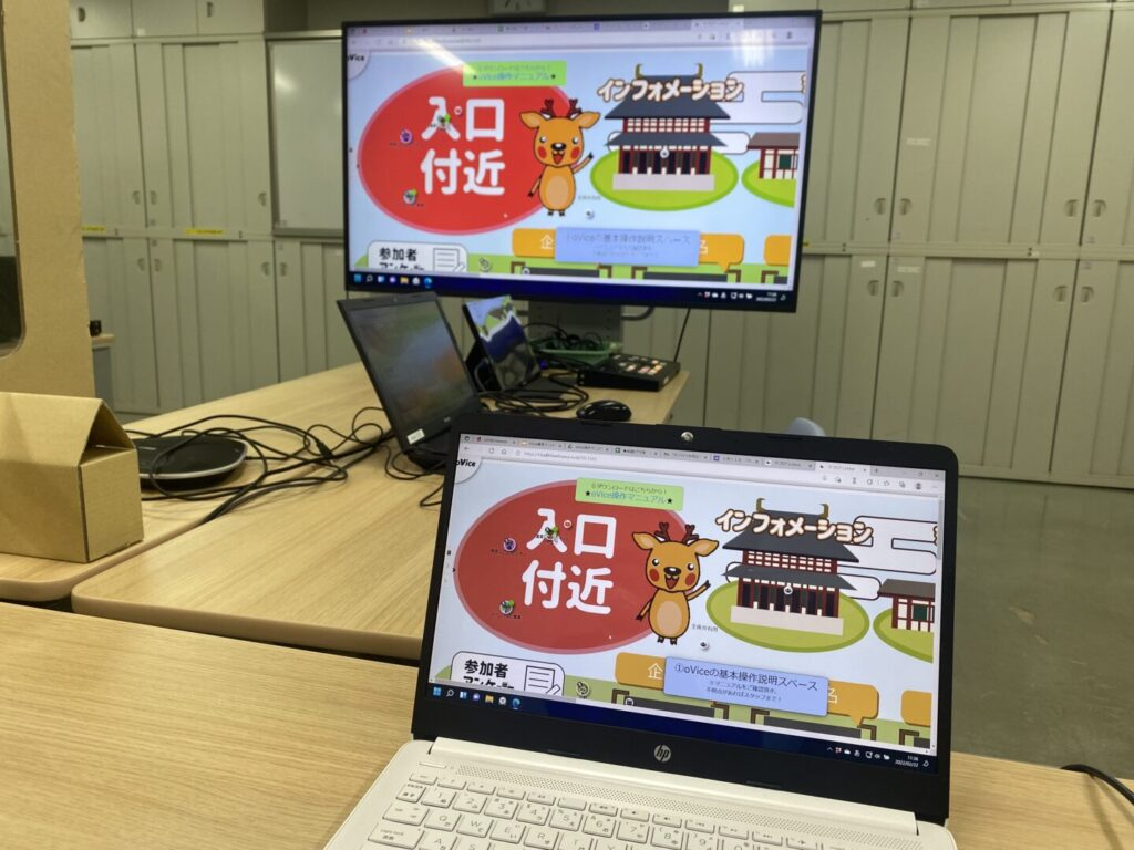 田畑)奈良の会場内では、対面の企業さんが集まる部屋と、オンラインの企業さんのパソコンを並べた部屋を用意してました!