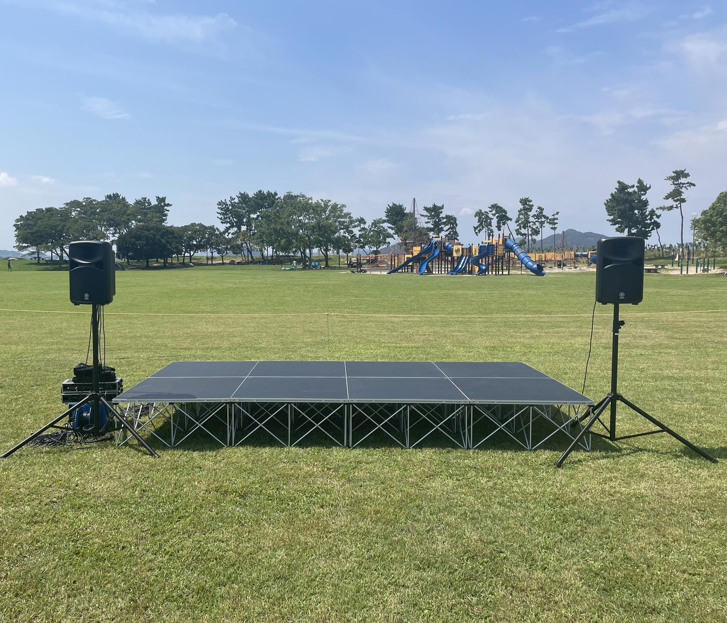 こちらは福岡市西区の小戸公園でヨガイベントのステージや音響設営を行いました!
