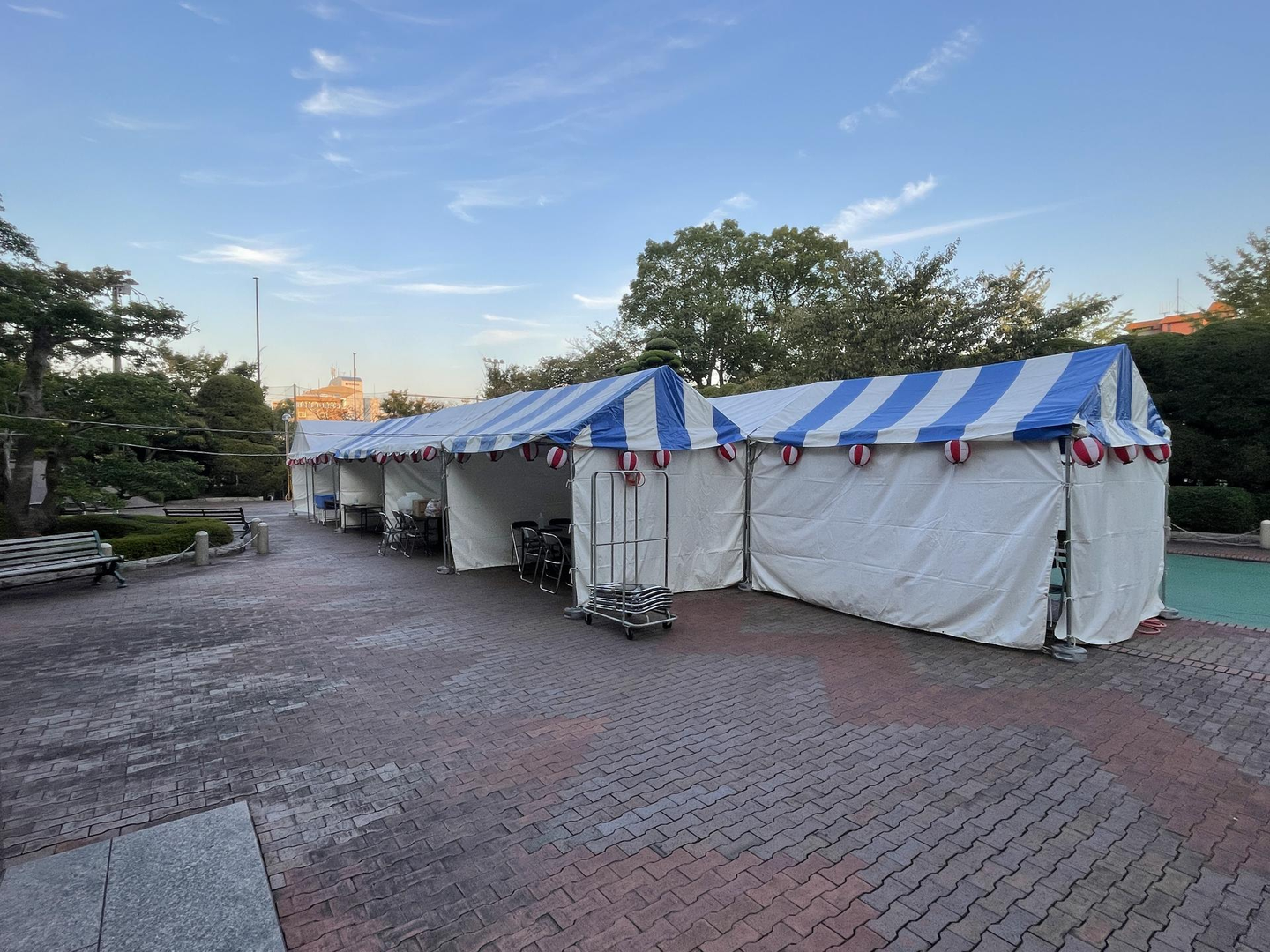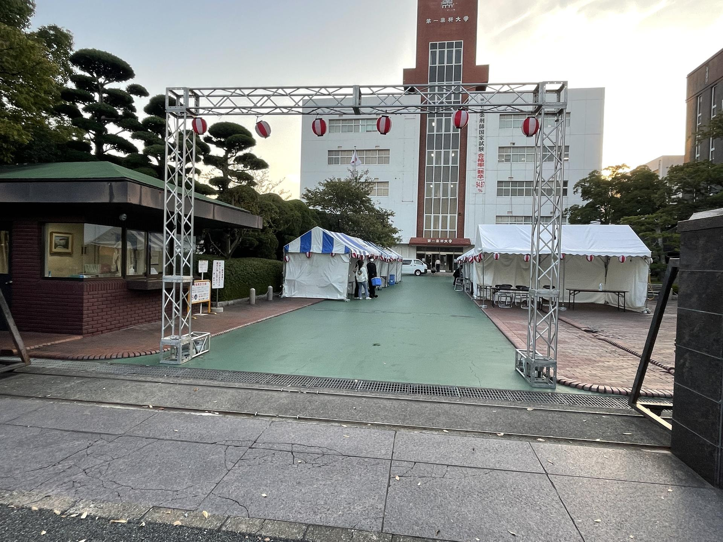 こちらは第一薬科大学様で学園祭の入場ゲートやテントなどをご用意させて頂き、設営まで行わせて頂きました!