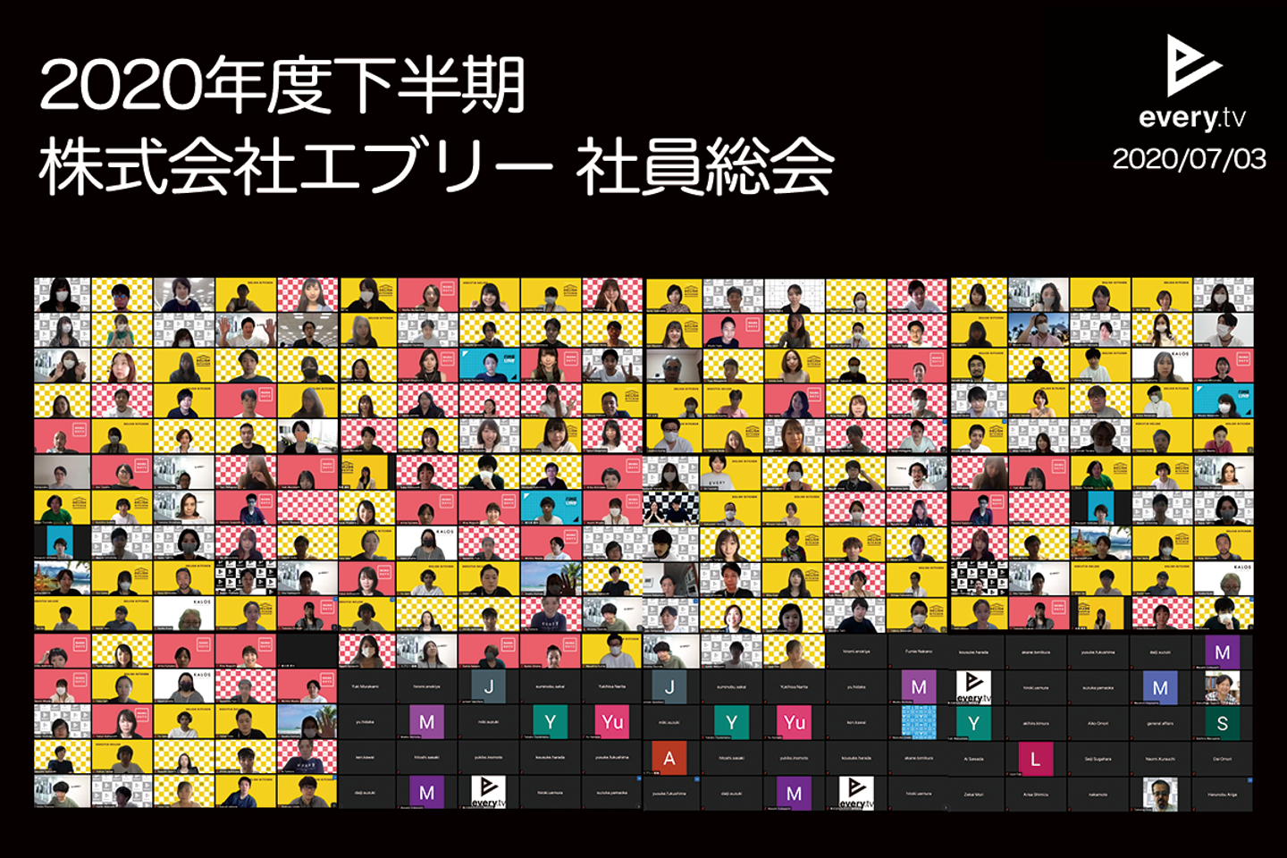 エブリーでは半年に1度、社員総会を実施しています。先週行われたエブリー2020年下期の社員総会は、オンラインで実施!功績が認められた個人およびプロジェクトに対する表彰式を行ったほか、メンバー全員でこの半期を振り返りました。