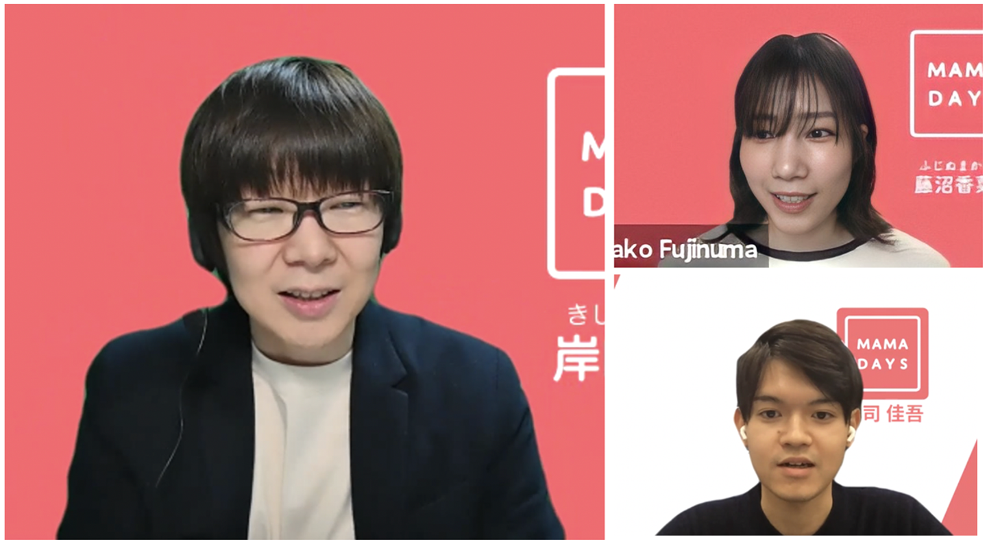 本イベントに登壇したのは、MAMADAYSカンパニー カンパニー長 岸田崇志と、ユーザグロース部 Web User Growthグループ マネージャー 中司 佳吾、ユーザグロース部 App User Growthグループ 藤沼 香菜子の3人。