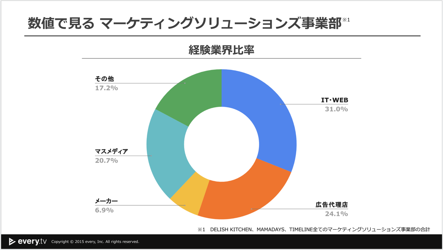 渡邉:エブリーのアカウントエグゼクティブの出身企業は多岐にわたりますが、一番多いのは、Web広告や広告代理店出身のメンバーですね。今までの業界知識や課題解決の提案ノウハウを存分に生かしていただける環境だと思います。