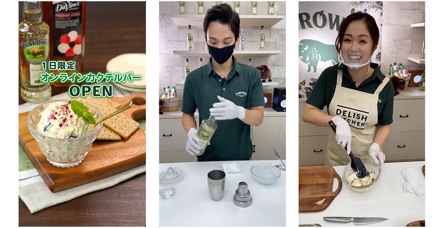 澤野:また、Instagramでのライブ配信事例も増えてきています。例えば、「ズブロッカ」というウォッカを対象商品としたお取り組みでは、オンラインカクテルバーと題して、バーテンダーの方をお招きして、弊社スタジオにて番組制作・配信を行いました。番組では、バーテンダーの方によるおうちでも簡単にできるカクテルの作り方と、『DELISH KITCHEN』のフードスタイリストによるカクテルにぴったりなペアリングフードの作り方をお伝えしました。