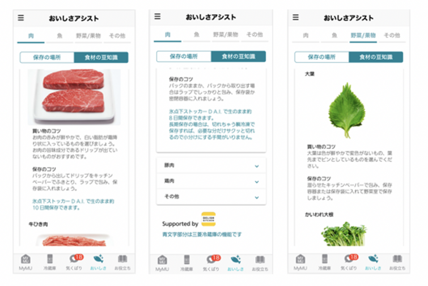 例えば、家電メーカーである三菱電機株式会社様(以下、三菱電機)の冷蔵庫とのお取り組みでは、三菱電機家電統合アプリ「MyMU」(以下、「MyMU」) 内で、『DELISH KITCHEN』が日々発信している食材の選び方や保存方法などのコンテンツを活用いただいています。「MyMU」は、お持ちの三菱電機の冷蔵庫と連携して使用状況がモニタリングできたり、冷蔵庫の知らなかった機能に気付けたりなど、便利なスマートフォンアプリですが、冷蔵庫を使いこなしてもらうだけでなく、購買のきっかけにもなるようなコンテンツを探していらっしゃいました。