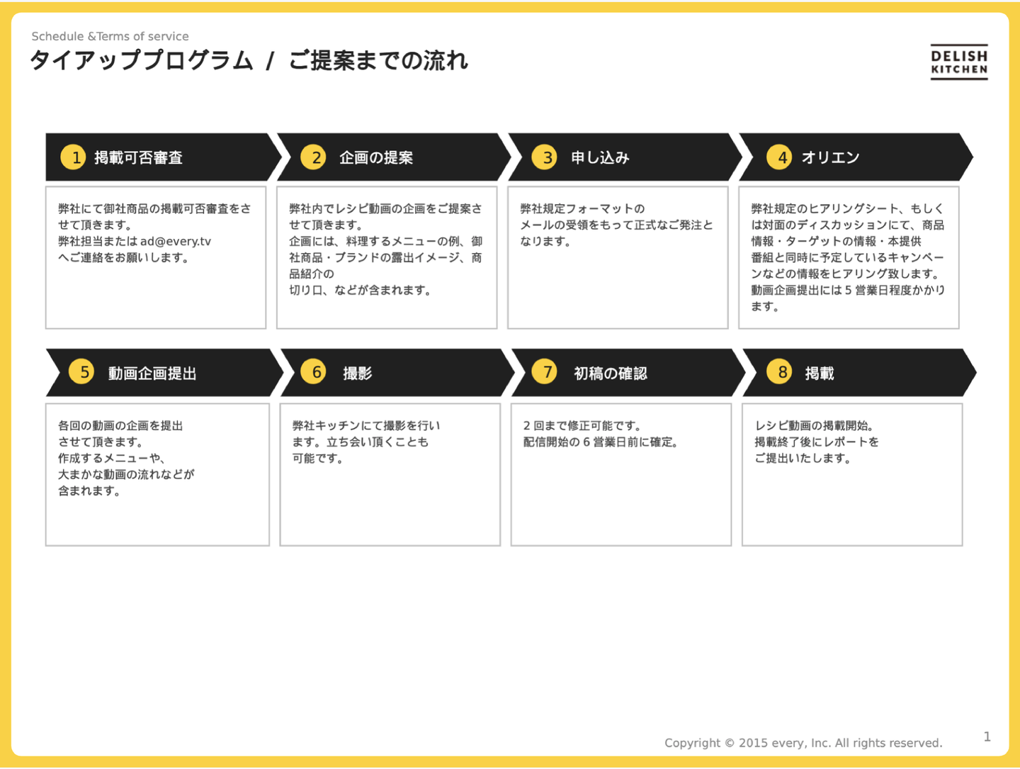 栗原:まず、オリエンテーションにてクライアントさんから要望や課題をヒアリングし、施策の全体像を企画します。店舗陳列や「ストアビジョン」も含めた取り組みの場合は、RSと提案内容をすり合わせていきます。イレギュラーな部分に関しては直接自分たちで小売さんとの個別交渉にも参加させていただきます。こうしてできた施策をクライアントに提案し進めることになれば、今度は社内のディレクターと一緒に施策の目的やコンテンツの内容を整理していきます。その後実際のレシピ開発、撮影、ナレーション録音、動画編集などの制作工程を経て全ての確認・修正を終えると、アプリやSNS、店頭での配信が始まります。