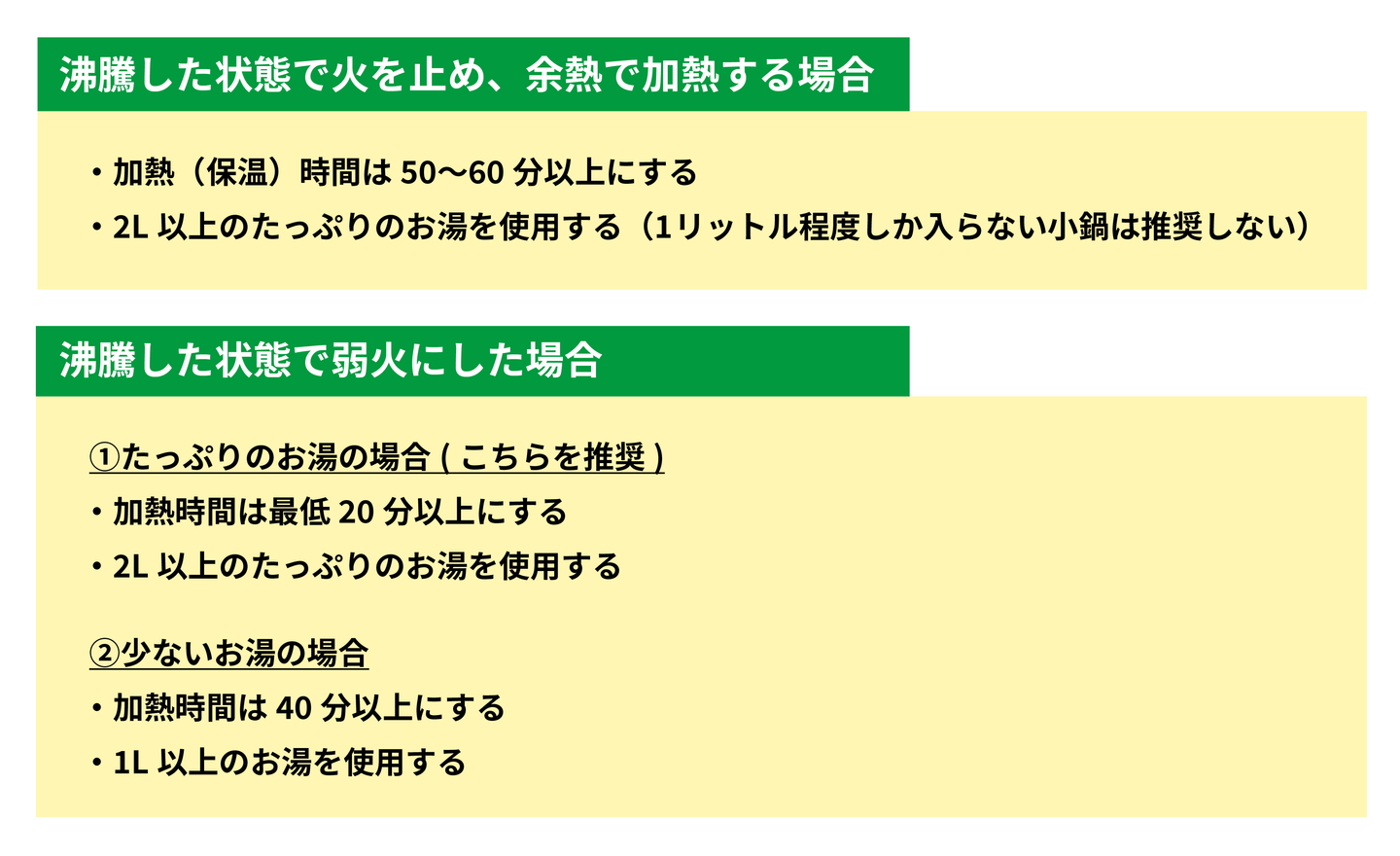連絡があった当初は、低温調理についての行政のガイドライン等がなかったため、日本食品衛生協会と連携をしながら徐々にルールを作り上げていった形です。注視すべきポイントは「中心部までお肉に火が通っているかどうか」でしたが、加熱に使用する水(お湯)の量、肉の厚みによって加熱の条件が変わってきます。そのため、前提条件として水の量と肉のサイズをこちらで指定することにしました。