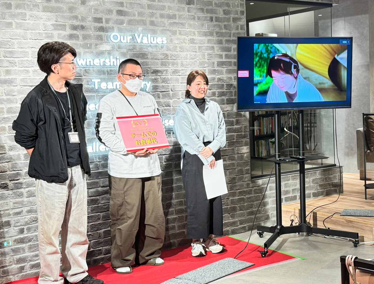 もう一人は、入社2年未満のメンバー。日々膨大なタスクをこなしながらも、常に笑顔を絶やさないムードメーカーです。会社の根幹ビジネスの一つである動画制作の進行管理を任されており、1歩も2歩も先を見据えた丁寧でかつ完璧な仕事が高く評価されました。セールスのように目に見えた成果が出しにくい中でも、職種に関わらずきちんと評価されることを示してくれました。