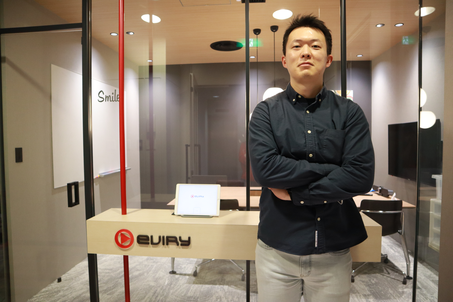 「僕が今所属しているのがビデオソリューション事業部 プロダクト開発本部というところになります。エビリーが提供しているプロダクトの開発エンジニアとして勤めています。エビリーには今年の8月に入社したばかりですので、ちょうど3カ月が経過したところですね。大学卒業後、もともとはIT系企業で営業として働いていました。広告営業からプロジェクトマネージャー、プロダクトマネージャーとなり、お客様と接する中で技術系の知識を取り入れる必要があり、自身で勉強を重ねて手を動かしていくうちに、自然とそちらの方に興味がわいてきて、30歳を機にエンジニアへとジョブチェンジを行いました」