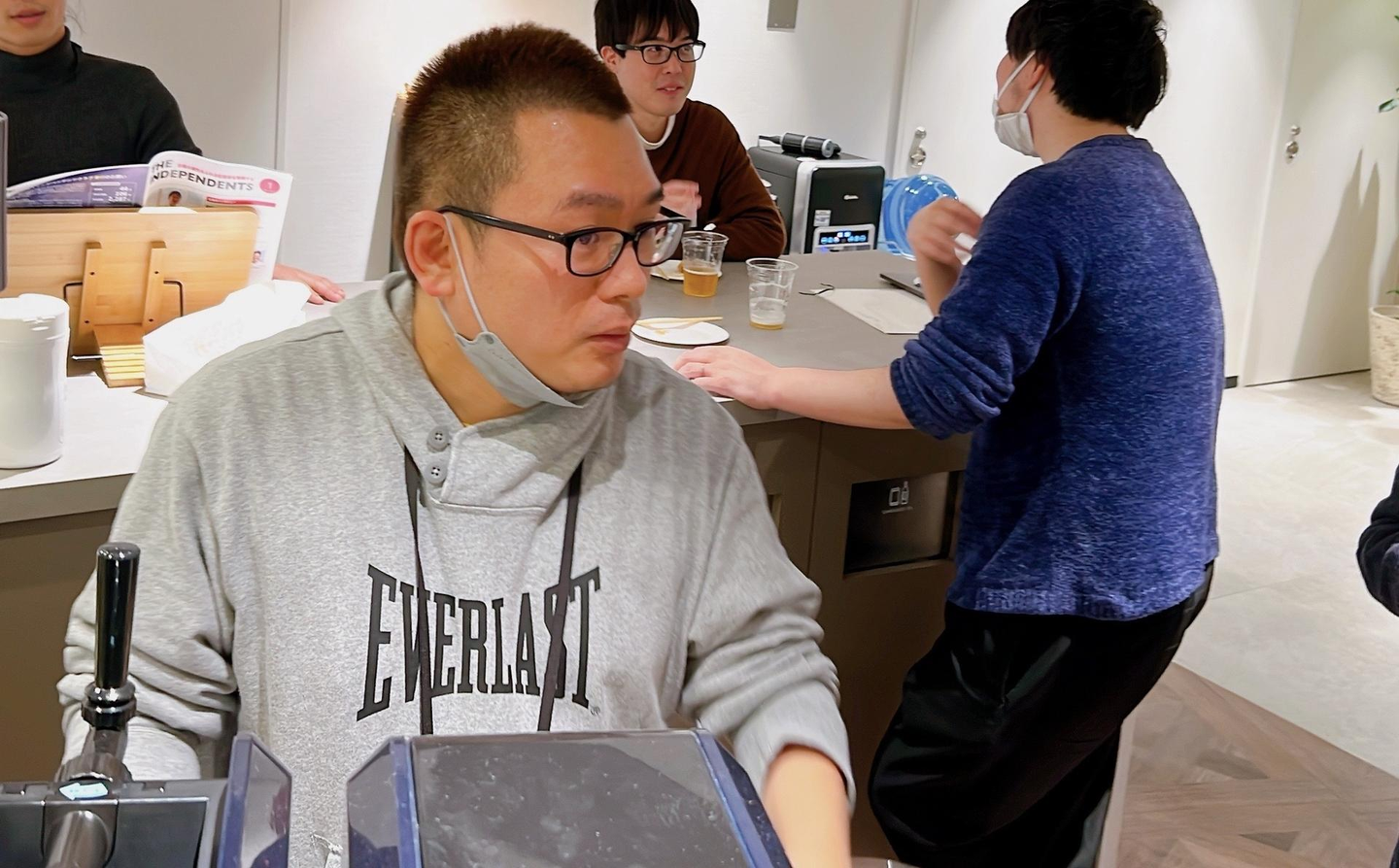 ゆたかママ:社内忘年会やってた時とかに、コロナ禍で出社体制が輪番制になっていたのもあって、「最近人が集まるのが少ないよね」と中川さん(社長)が話し出したのを皮切りに、飲み会をみんなで企画しようという話が出て、スナックゆたかを始めることになりました。その場にいた人たちの話の流れで、「スナックゆたか」やったら?という話があったのがきっかけだったと思います。