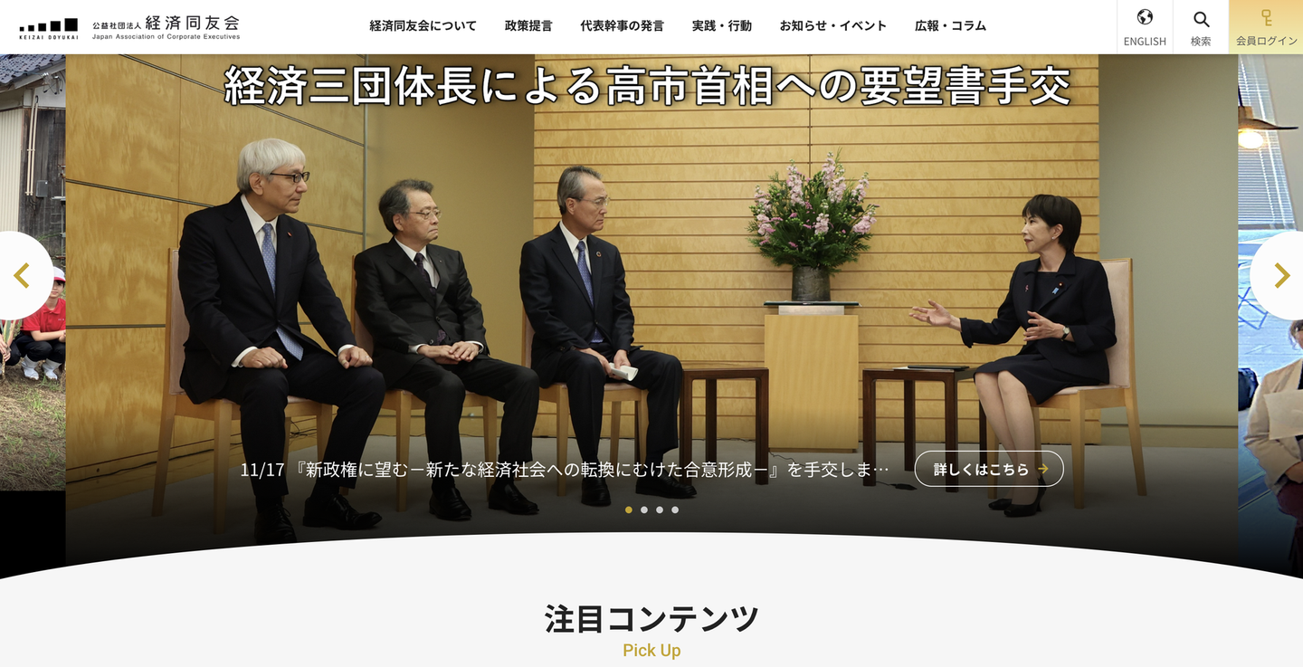 『経済同友会』の公式サイトを、代表幹事交代や創立70周年の節目に合わせてリニューアル。