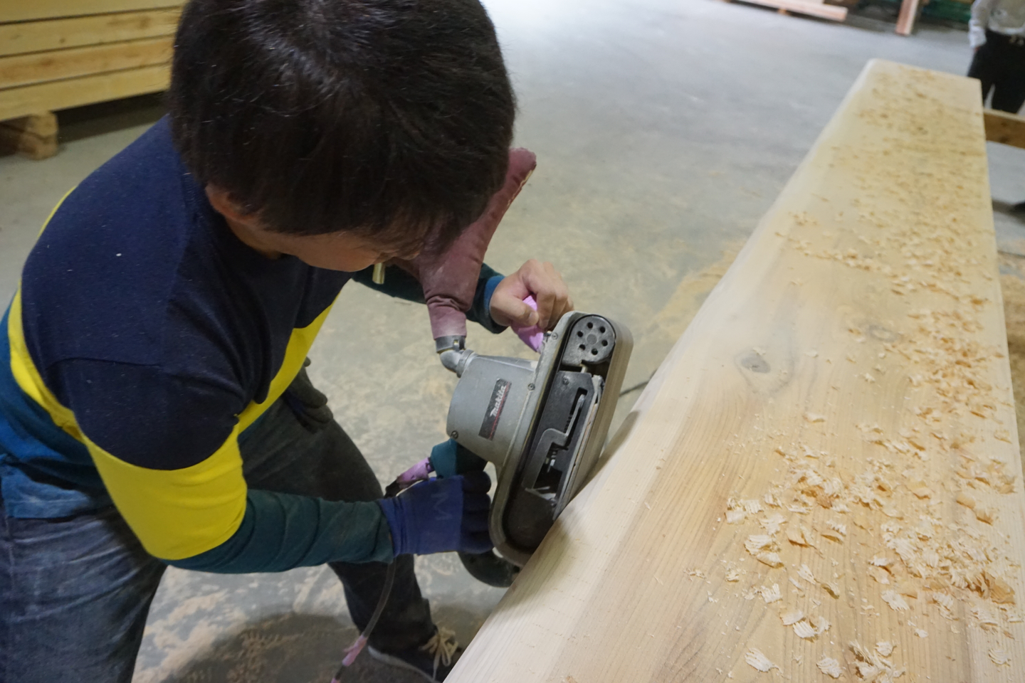 そして今回「デスクも自分たちで作りましょう!」と、PCを電動サンダーに持ち替えたメンバーもいました。