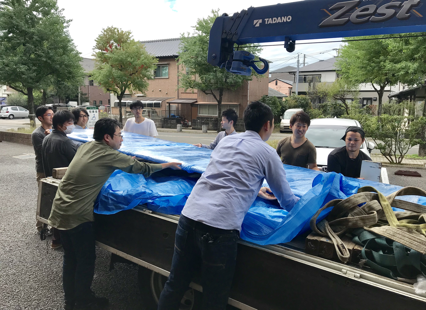 エレベーターにはもちろん入らないので、皆で力を合わせて運びます!