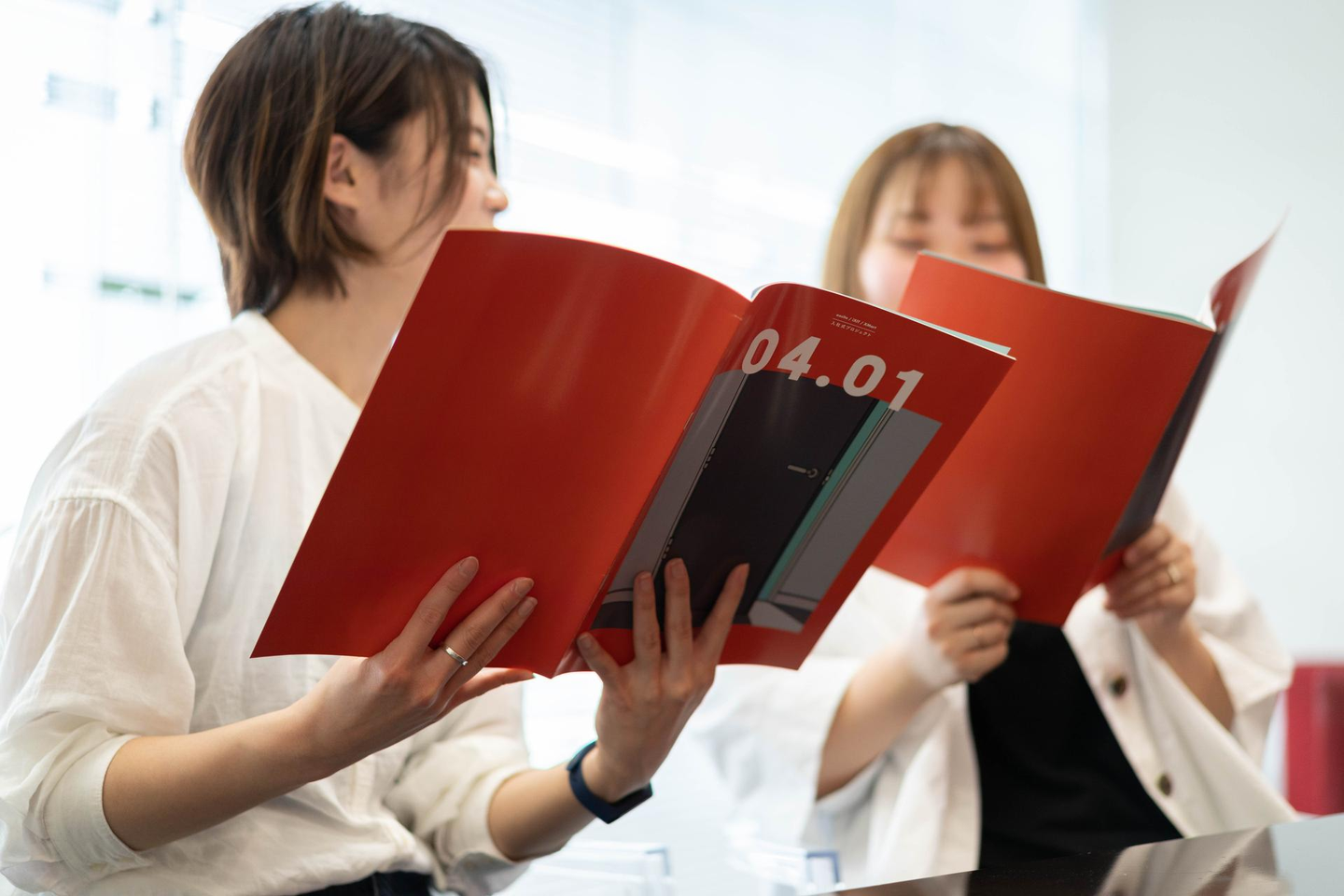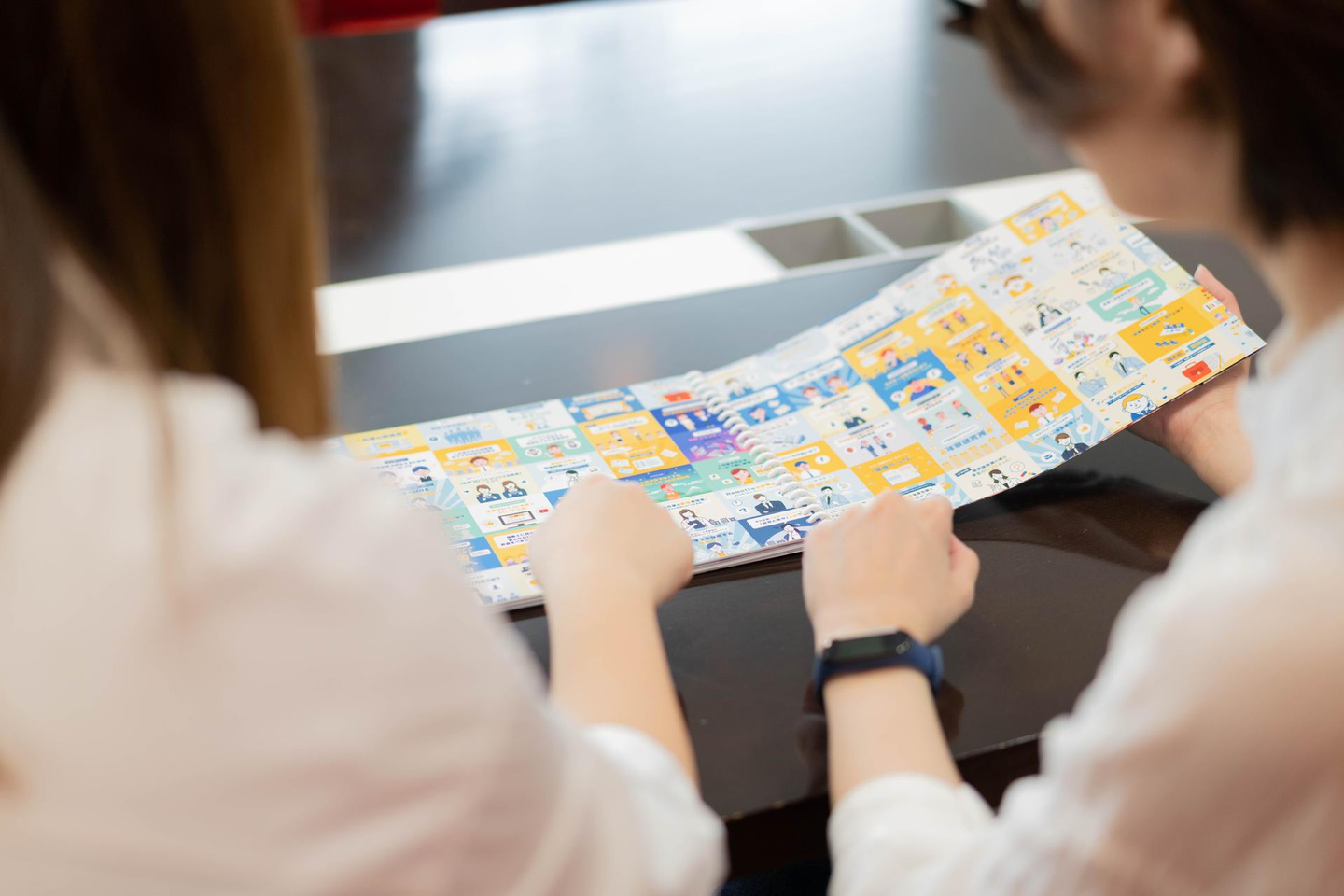 山﨑:入社後も部署は違いますが、朝会で毎日話す時間をとっています。いま取り組んでいる業務を報告しあったり、悩んでる部分を相談をしたり、雑談ベースでいろいろな話をしています。また、全社のデザイナーが集まるMTGが週に1回あるので、そこでデザイナー同士でコミュニケーションをとる機会もありますね。