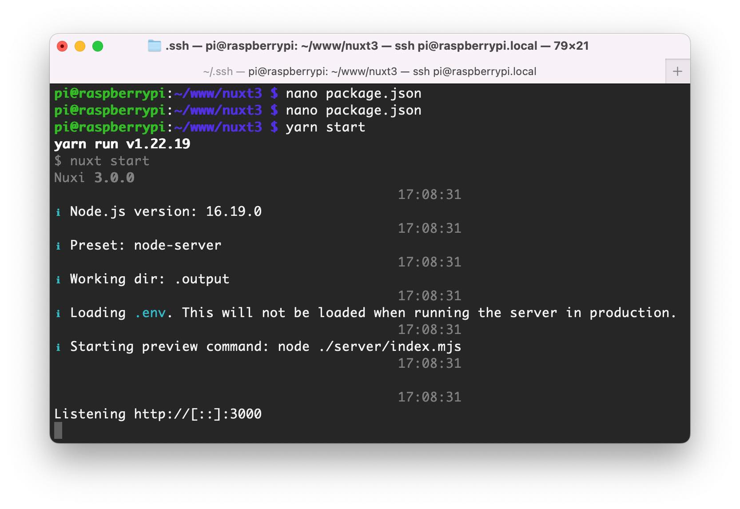 最新の OS に入れ替えたのち、Node.js の準備が完了してから Nuxt 3 プロジェクト(Nitro サーバ)の作成。