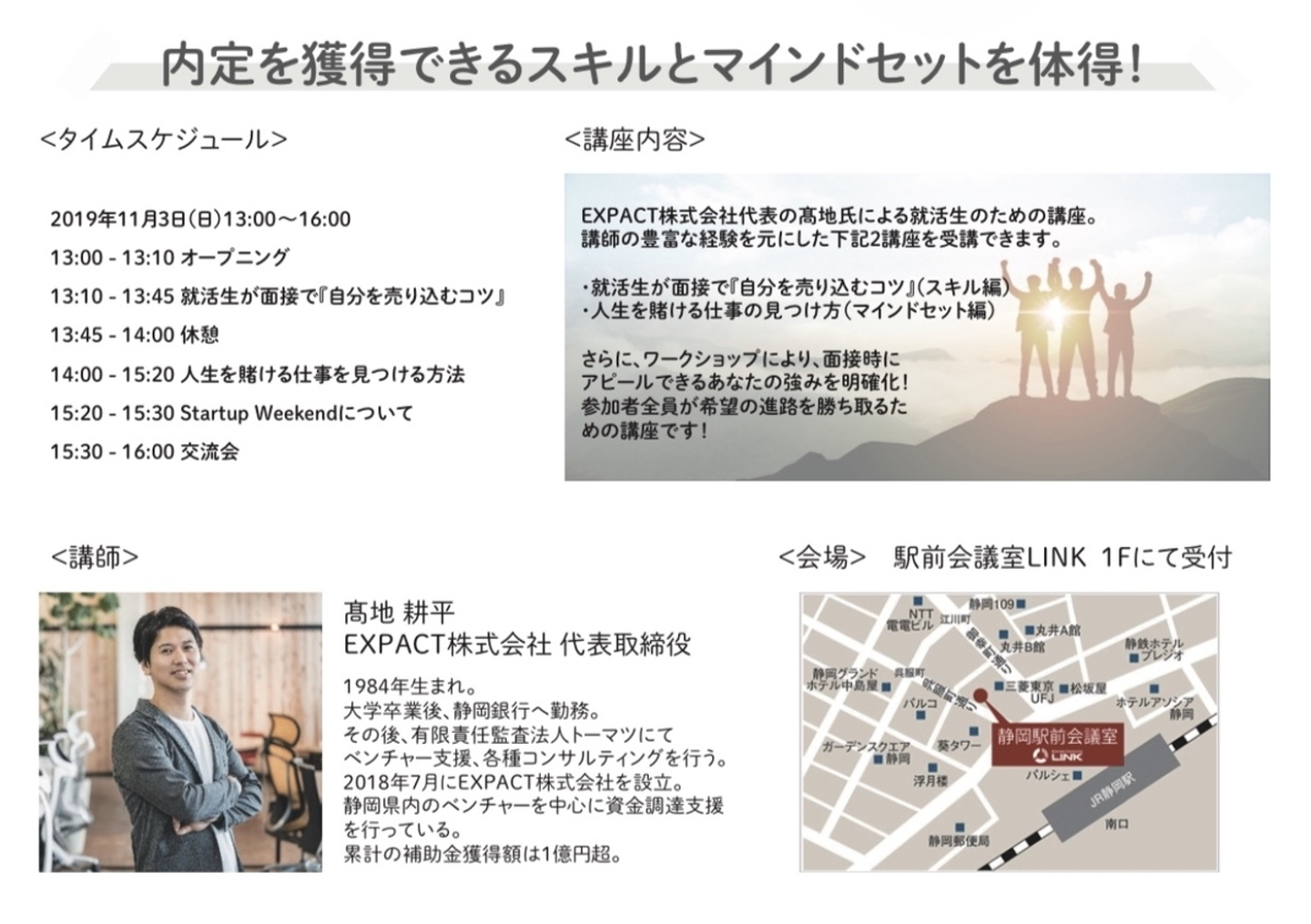 場所はあいにく静岡市内のみとなりますが、お近くの方は是非ともご参加お待ちしております。