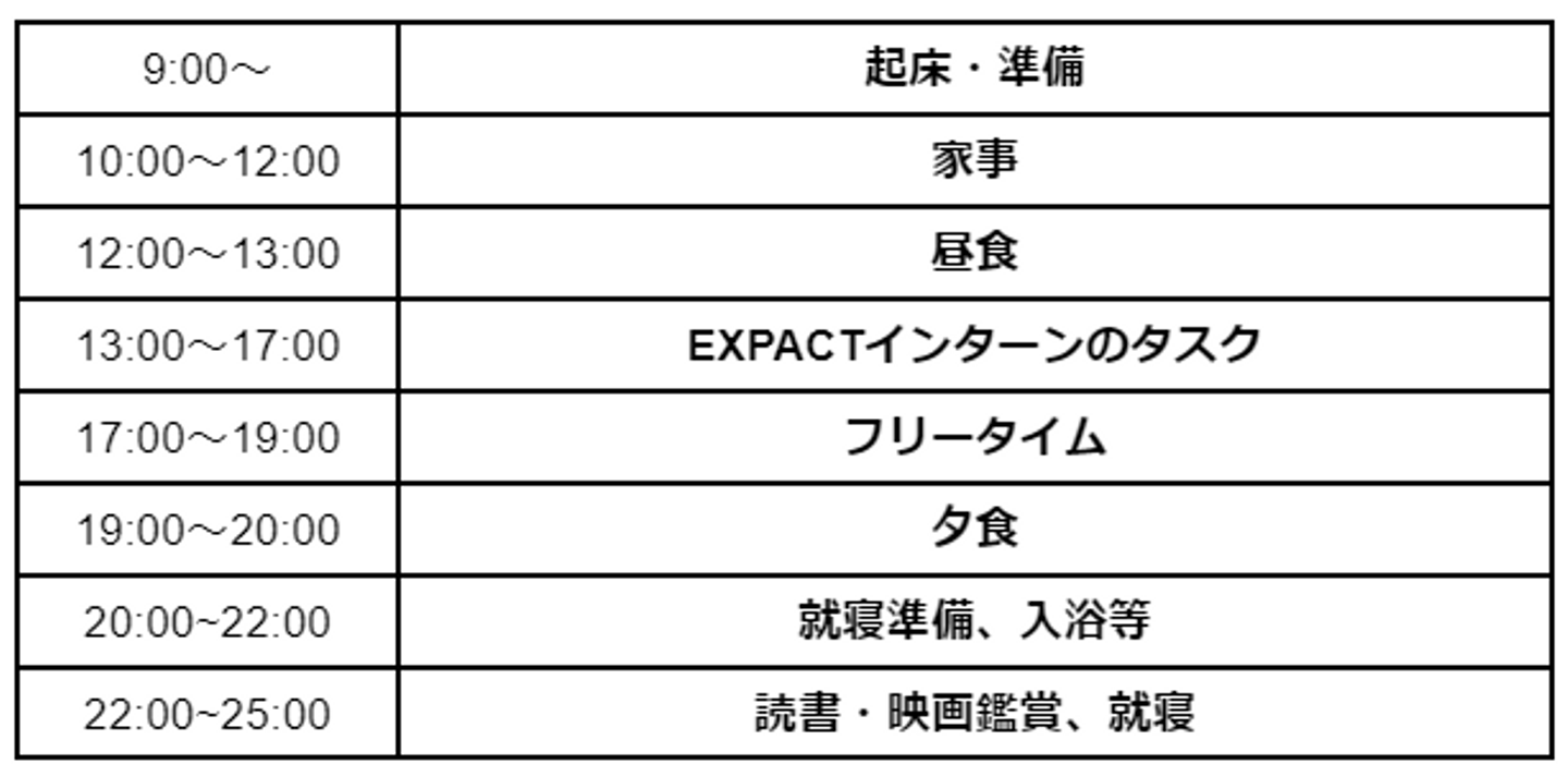 EXPACTのインターンがある日はこのようなスケジュールです。