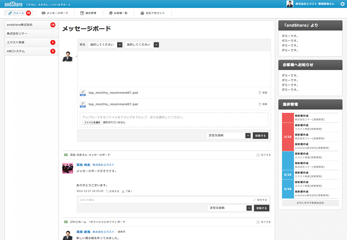 当初の仕様は、WEB制作会社が自由にクライアントを招待し情報が共有できるというものでした。