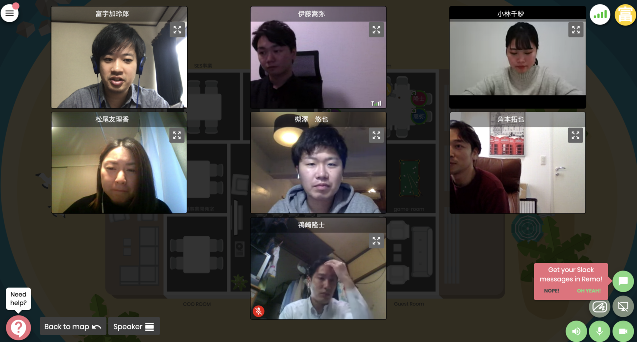 移転後はどうなるかな...と思ってましたが、朝から全員バーチャルオフィスに出社してみるという習慣は真新しさがあったため、ゲーム感覚で何の抵抗もなく根付き、みんながいる状態がすぐに定着しました!