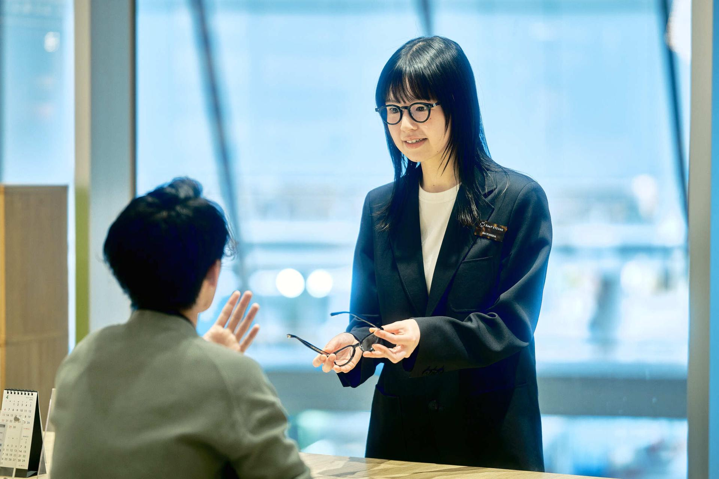 ただ、専門的なことも、先輩が一緒にやりながら教えてくれたことで、着実に学んでいけました。学んだことを活かして、お客様にぴったりのメガネに調整できた時はとても嬉しいですし、一番やりがいを感じます。売るだけじゃなくて、『何かを極めていきたい、こだわりたい』という人はとても向いている職だと思います。」