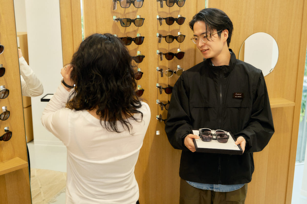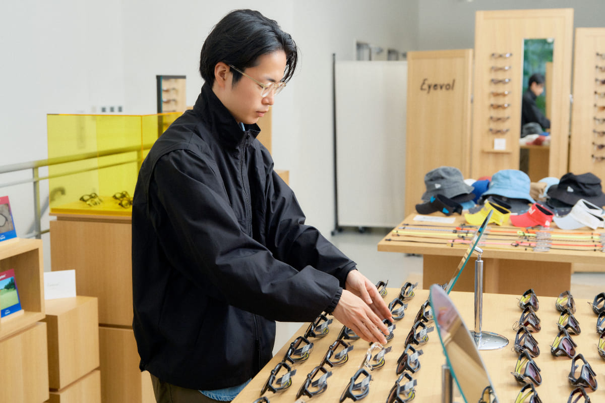 「昨年の夏にできたばかりの店舗で、EYEVANの中のブランドのひとつ、サングラスブランド『Eyevol』を専門に扱っています。店舗は建物の2階にあって、1階がTHE EYEVANという、また違うコンセプトの店舗になっています。」