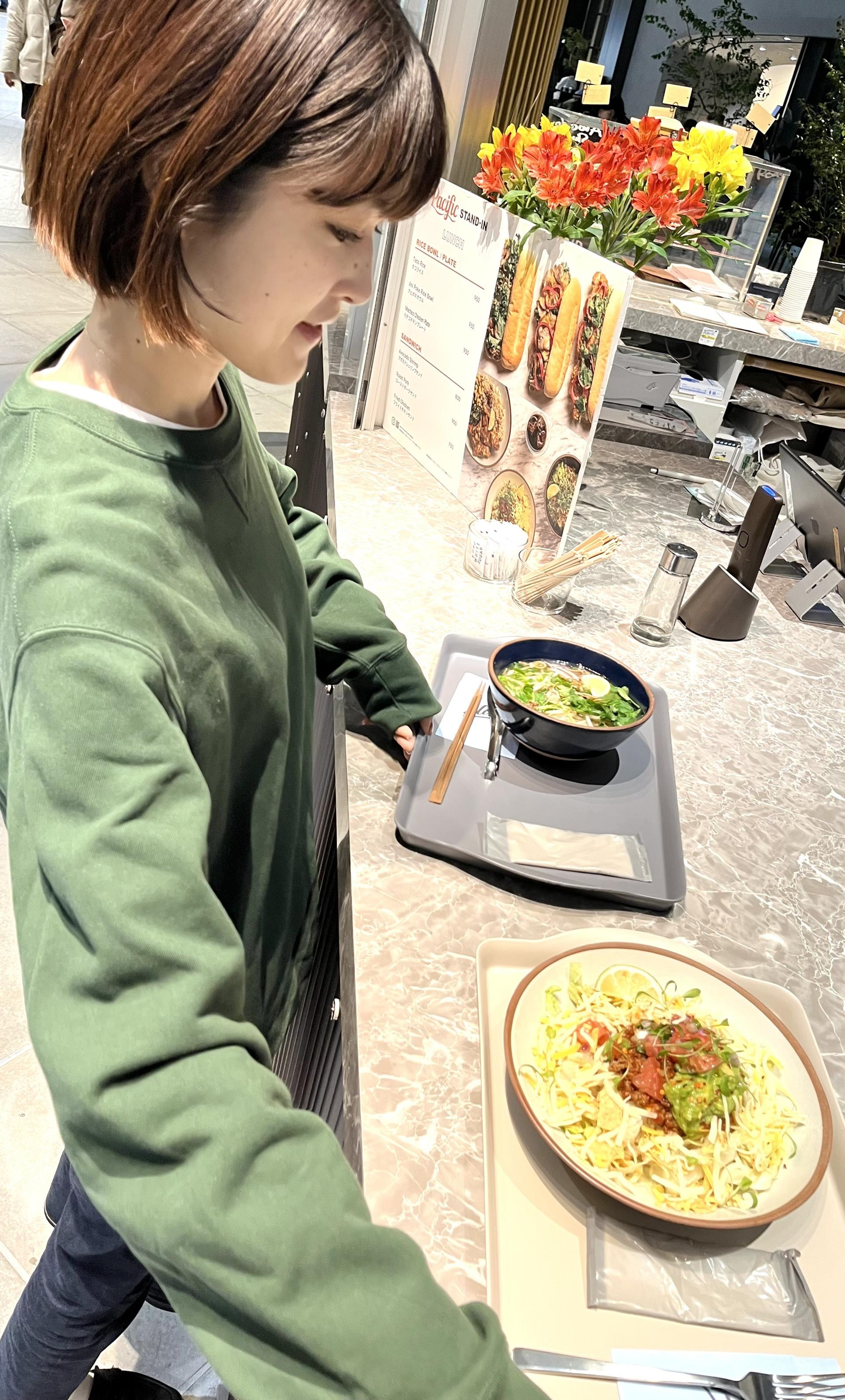 私はタコライス、一緒に行った杉下さんはパクチー大盛りのフォーを注文。