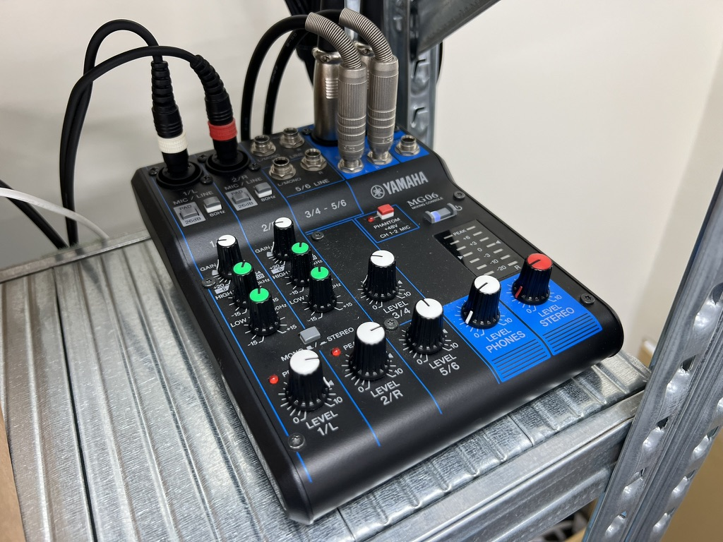 YAMAHAのミキサーMG06は操作性がシンプルで誰でも使いやすく、音質も十分なクオリティです。外でイベントをやる時にも手軽に持ち出せるコンパクトさも魅力ですね。